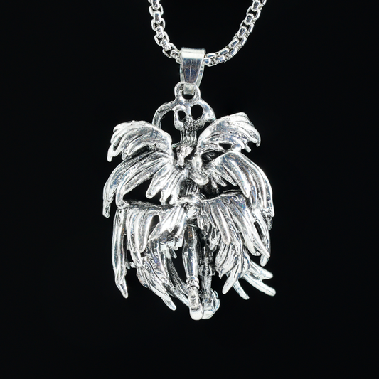 Fallen Valkyrie Winged Pendant, Norse Myth Warrior Necklace, Gothic Goddess Amulet, Dark Style Jewelry, Retro Carved Statement Piece