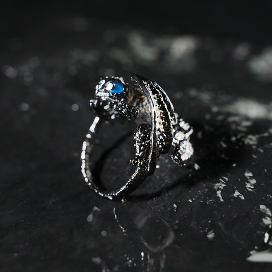 Fantasy Dragon Ring | Night Blue Eye Accent | Trendy Statement Jewelry | Protective Totem Gift for Couples