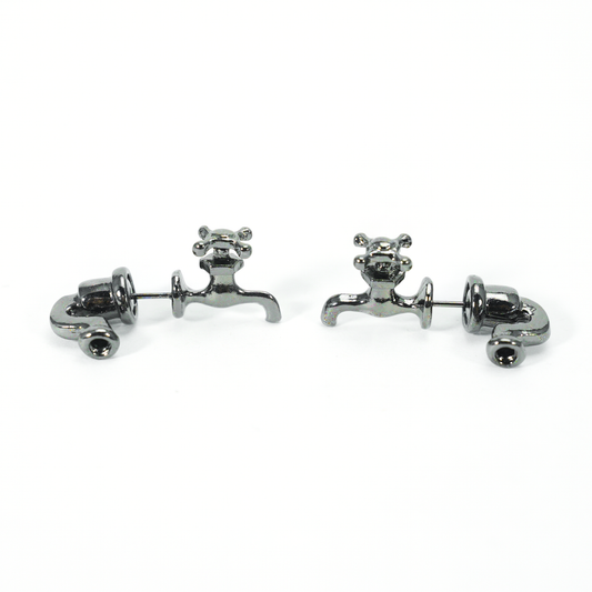 Faucet Earrings Quirky Metal Tap Studs, Punk Industrial Style Water Valve Jewelry, Funny Statement Earrings for Women