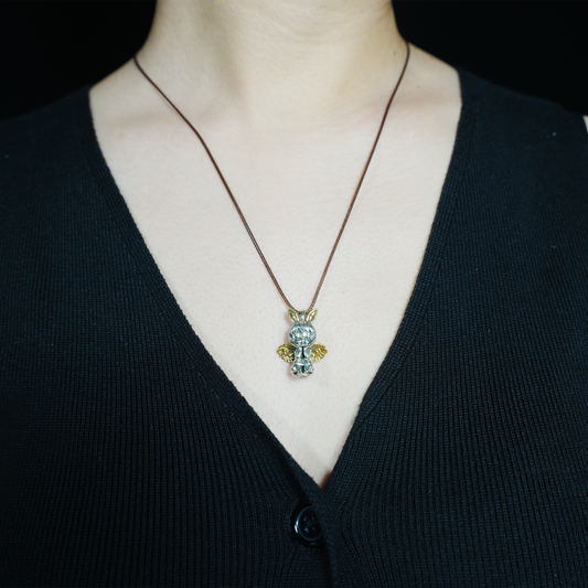 Gothic Bunny Angel Pendant, Fantasy Rabbit Fairy Necklace, Guardian Spirit Jewelry