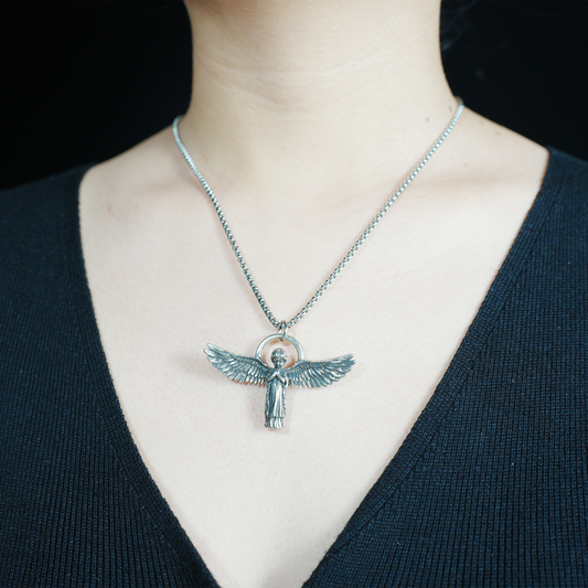 Gothic Angel Pendant, Winged Guardian Necklace, Prayer Protection Jewelry