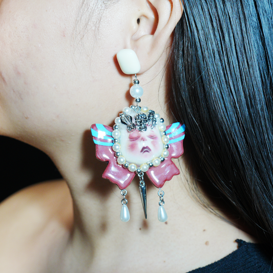 Gothic Crying Doll Earrings | Dark Rococo Bow Statement Jewelry | Emotional Artistic Gift for Alternative Fashion Lovers