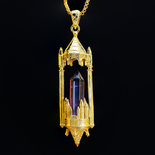Gothic Cathedral Crystal Pendant Necklace, Medieval Fantasy Jewelry for Protection & Power