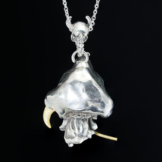 Gothic pendant with ghost crystal in oxidized 925 silver totem design gift for her statement necklace birthday