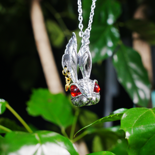 Gothic Red-Eyed Bunny Necklace, Fantasy Animal Totem Pendant, Spiritual Amulet Jewelry, Unique Gift for Dark Aesthetic and Holiday Wear