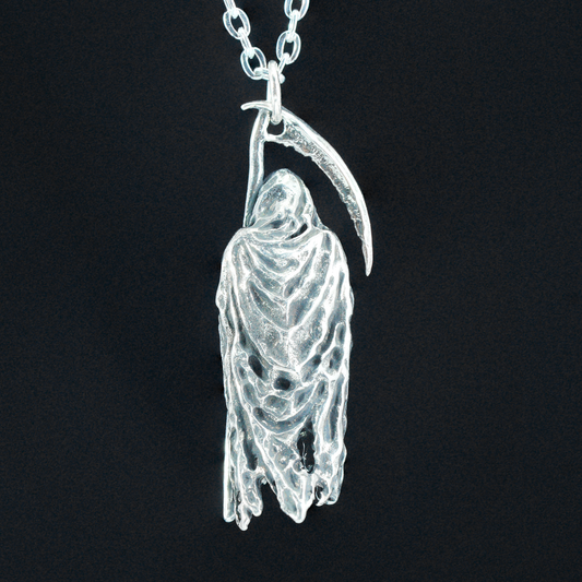 Gothic Grim Reaper Pendant, Dark Amulet Necklace, Hooded Scythe Figure Jewelry, Punk Occult Style for Gothic Outfit & Spiritual Wearers