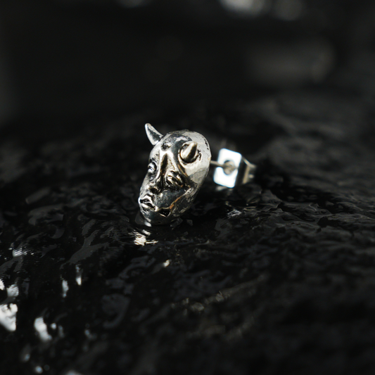 Gothic Demon Mask Earring with Sad Face Carving, Punk Style Emotional Amulet, Artistic Single Stud for Symbolic Wear