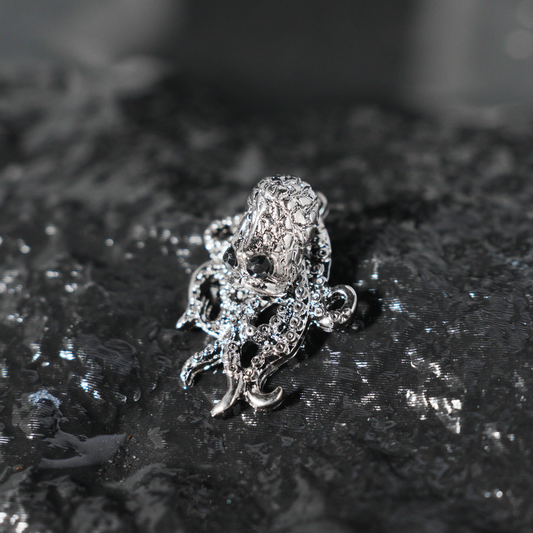 Gothic Octopus Stud Earring with Gemstone Eyes, Dark Fantasy Kraken Sea Monster Jewelry for Punk Style