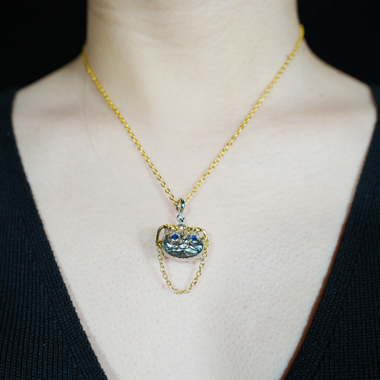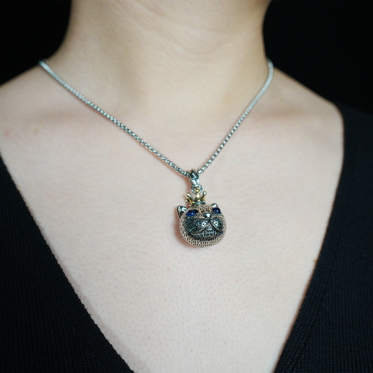 Gothic Royal Cat Pendant, Blue-Eyed Crowned Cat Necklace, Fantasy Animal Jewelry