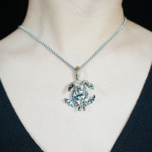 Gothic Winged Bunny Pendant, Fantasy Rabbit Necklace with Bow, Mythical Animal Jewelry