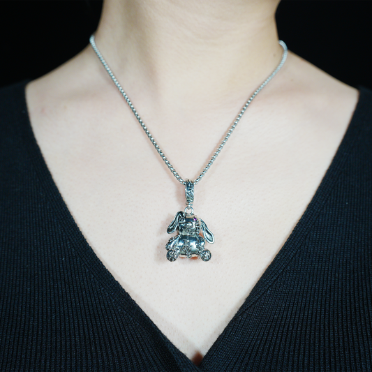 Gothic Stitched Bunny Pendant, Dark Fantasy Plush Rabbit Necklace, Creepy Cute Jewelry