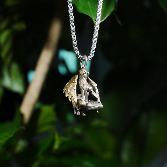 Gothic Winged Goddess Pendant Necklace – Dark Angel Totem Jewelry – Dual-Tone Artistic Sculpted Pendant – Symbol of Feminine Power