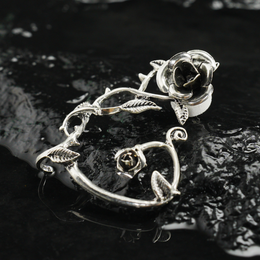 Gothic Rose Vine Earrings | Oversized Botanical Studs | Carved Flower Statement Earrings | Handmade Floral Jewelry Gift