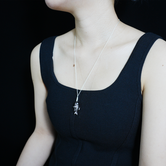 Lucky Fish Pendant Necklace – Whimsical Black Fish Charm, Cute Totem Jewelry Gift, Handmade Animal Amulet for Hope & Fortune