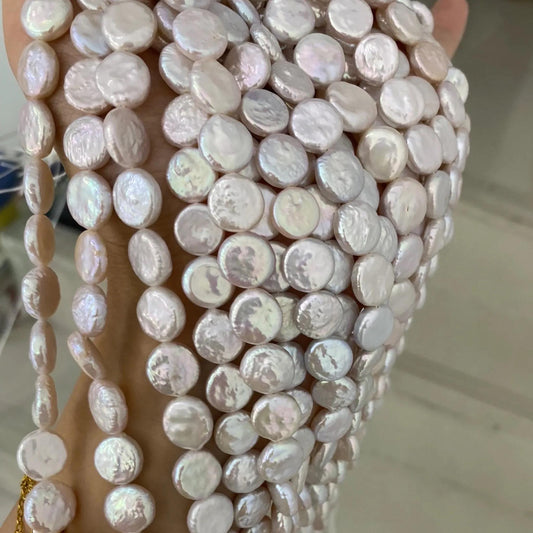 Natürliche Coin-Perlen aus Süßwasser – Weiße flache runde Perlen mit Glanz für DIY-Schmuck, Hochzeitsdesigns, Boho-Ketten, Statement-Stränge