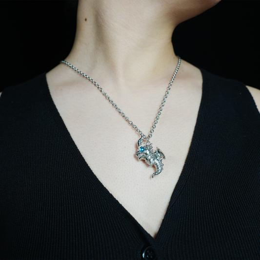 Blue-Eyed Dragon Pendant Necklace Gothic Fantasy Vintage Alloy Jewelry