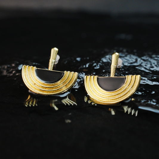 Black Gold Geometric Sunray Earrings | Minimalist Tribal Dangle Earrings for Women