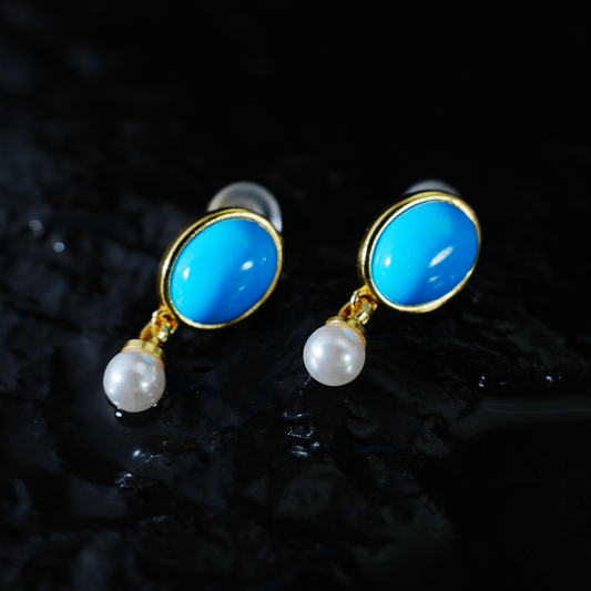 Blue Stud Earrings | Minimal Spiritual Jewelry | Vintage-Inspired Look | Elegant Everyday Design | Nature-Inspired Artistic Accessory