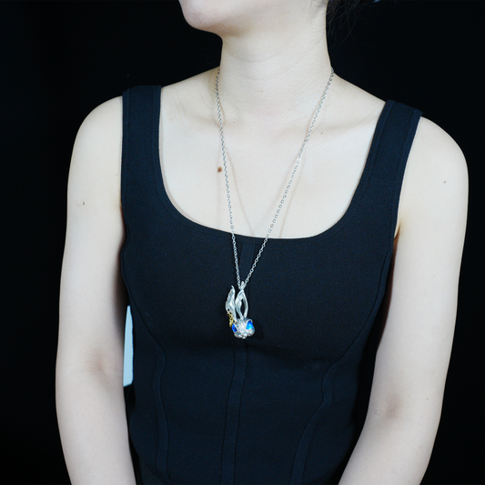 Blue-Eyed Rabbit Pendant | Fantasy Animal Necklace | Dream Amulet Jewelry | Artisan Statement Gift