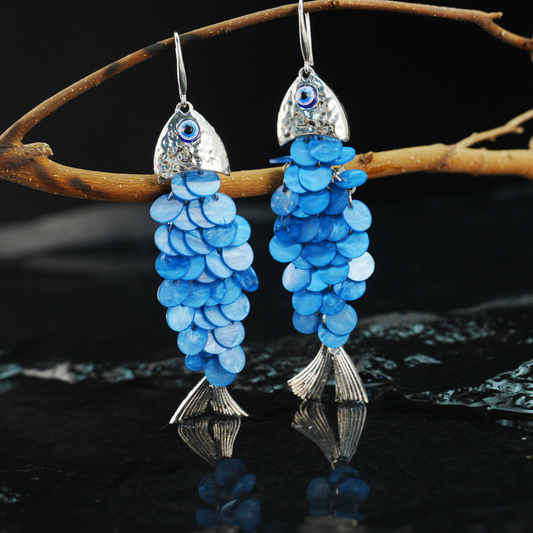 Blue Fish Scale Long Dangle Earrings Ocean Style Statement Jewelry for Summer