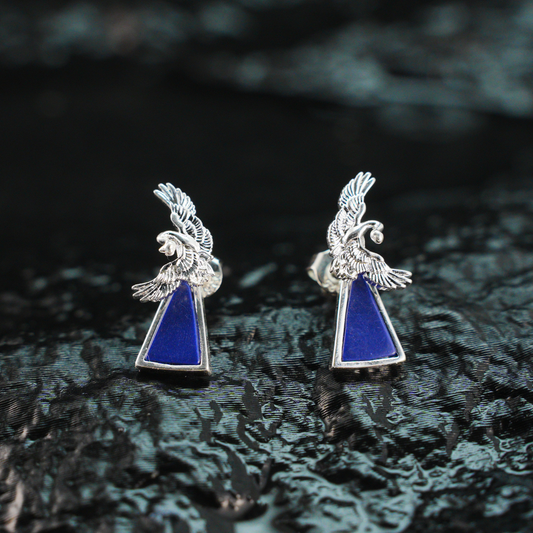 Blue Inlay Bird Earrings Symbol of Freedom Elegant Statement Jewelry