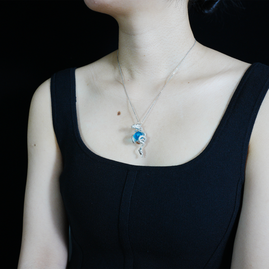 Oriental Dragon Totem Necklace – Coiled Dragon Pendant with Blue Energy Orb, Myth-Inspired Unisex Gift Jewelry