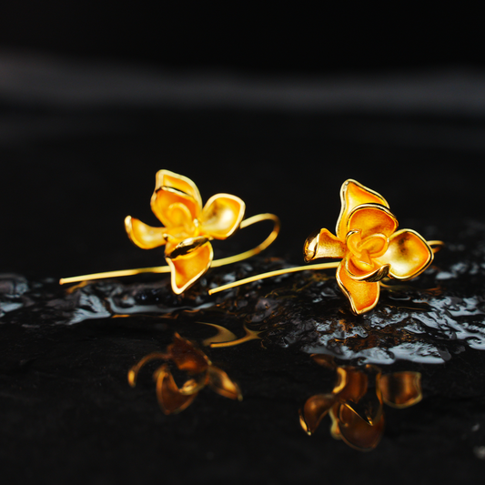 Orchid-shaped earrings, elegant petal 3D design, light luxury style accessories