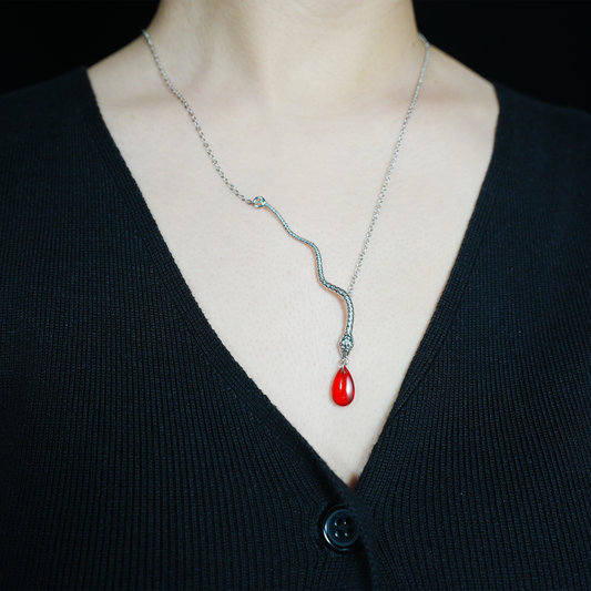 Snake Necklace with Red Teardrop Pendant Gothic Talisman Jewelry