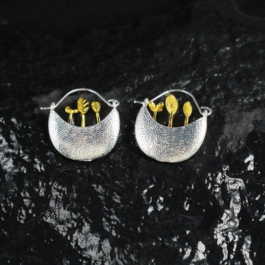 Sprouting Leaves Drop Earrings, Natural Art Statement Earrings, Lightweight Plant-Inspired Jewelry