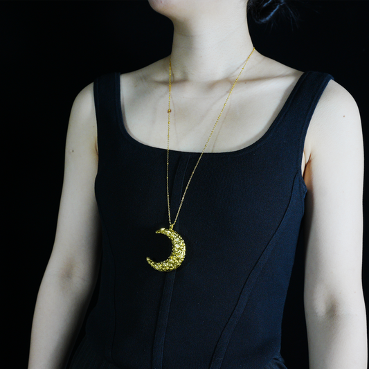 Starry Moon Pendant Necklace | Gold Crescent Dream Charm | Textured Lunar Jewelry