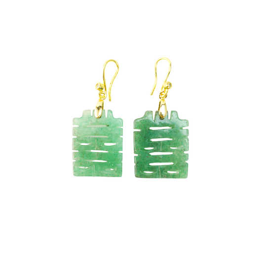 Chinese Double Happiness Jade Earrings | Long Green Jade Dangle Earrings, Wedding & Festive Lucky Charm