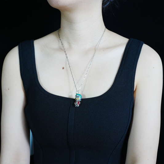 Chibi Mischief Doll Pendant Necklace, Green Hair Clown-Inspired Charm, Bold Punk Street Style Jewelry for Cosplay Lovers