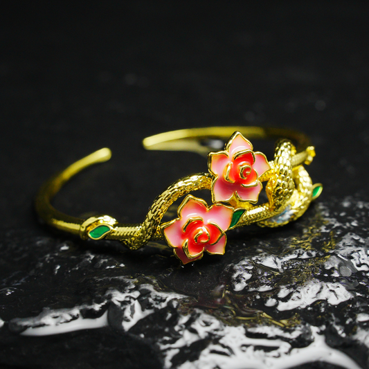 Camellia Snake Bracelet Vintage Gold Bangle Gothic Elegant Jewelry