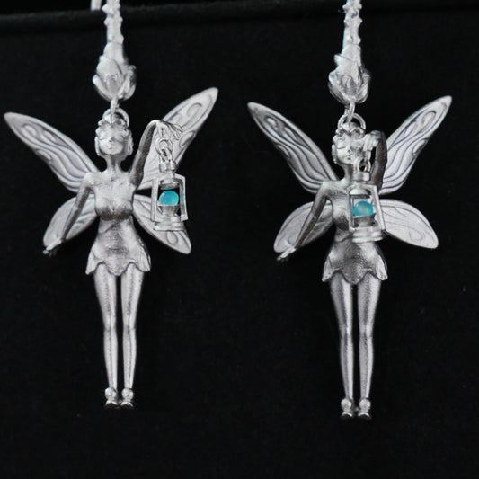 925 Silver Fairy Earrings with Amazonite | Handmade Fantasy Jewelry | Winged Elf Design Gift for Dreamers and Collectors