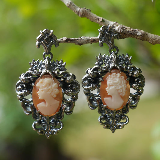 Vintage Cameo Earrings in Baroque Silver Frame | Victorian Lady Profile Earrings | Handmade Gothic Gift Jewelry
