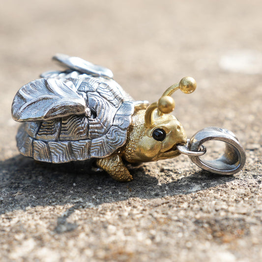 Flying Turtle Pendant | Handmade Silver & Brass Animal Amulet | Fantasy Jewelry Gift for Nature Lovers & Dreamy Souls