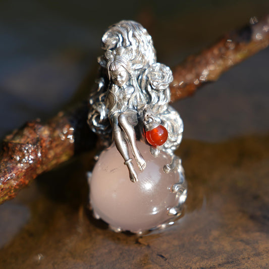 Rose Quartz Pendant with Carnelian Lantern | 925 Sterling Silver Healing Necklace | Handmade Fantasy Amulet Gift for Women & Wiccan Souls