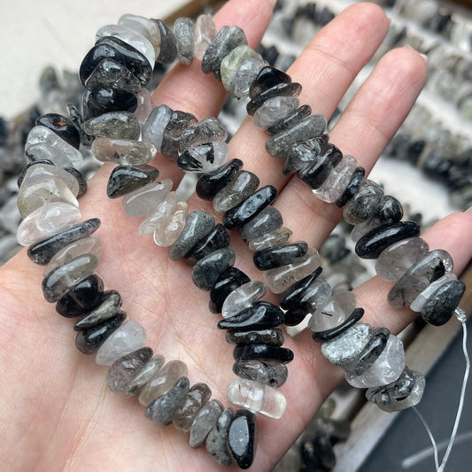 Natural Black Rutilated Quartz Chip Beads 13mm | Medium Drill Strand 38cm | Organic Freeform Beads for DIY Bracelets, Necklaces & Earrings