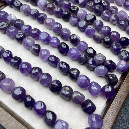 Raw Amethyst Nugget Beads 10mm | Frosted Semi-Transparent Crystal Beads | Hand-Polished Natural Stones for DIY Bracelets & Necklaces