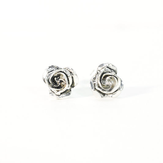 Vintage Silver Rose Stud Earrings | Floral Earrings for Women | Handcrafted Gothic Romantic Jewelry