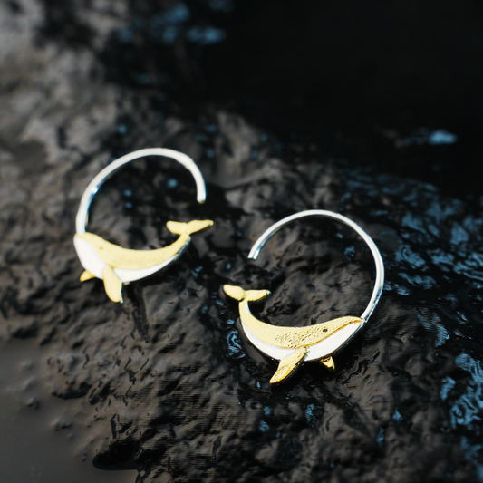 Whale Stud Earrings – Gold & Silver Two-Tone Animal Totem Jewelry, Spiritual Ocean Lover Gift