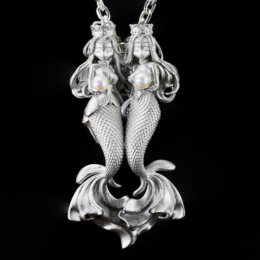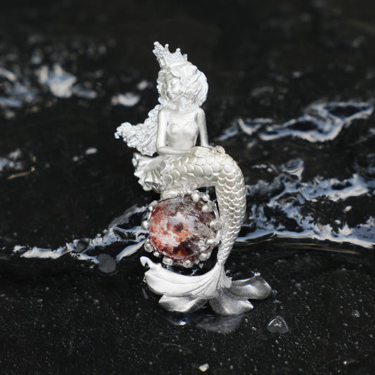 Mermaid Pendant Necklace with Star Ruby & Pearl | Handcrafted Ocean Fantasy Jewelry | Symbol of Love & Protection