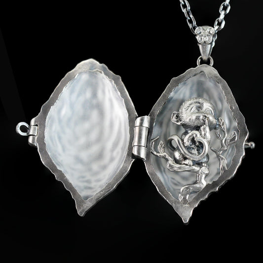 Openable Crystal Peach Pendant | Monkey Spirit Amulet | 925 Silver Jewelry | Handmade Fantasy Talisman | Spiritual Gift for Her