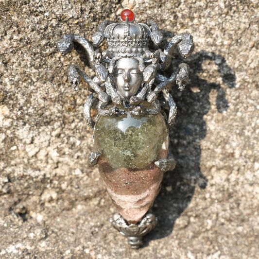 Medusa’s Gaze Pendant | 925 Sterling Silver & Phantom Quartz Necklace | Handcrafted Mythical Jewelry Gift for Fantasy & Art Lovers
