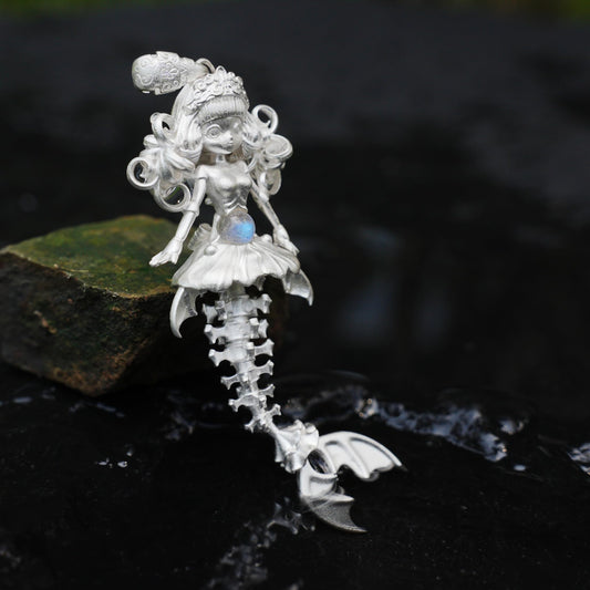 925 Sterling Silver Mermaid Skeleton Pendant with Labradorite | Handcrafted Ocean Amulet Necklace | Gothic Fantasy Jewelry Gift