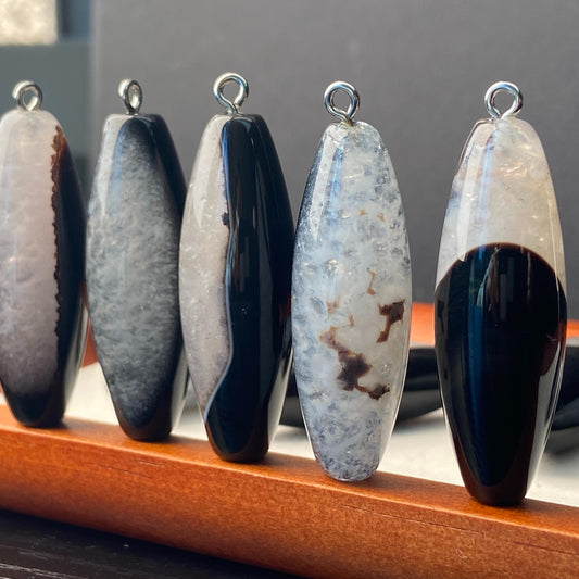 Natürlicher Kristall-Achat Anhänger für Schmuckherstellung – Boho DIY Perle, gebohrt, schwarzer & weißer Stein, Heilstein Unikat