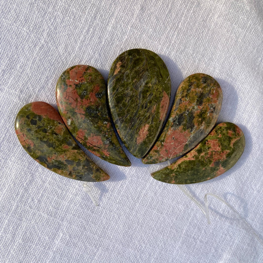 Natürliche Unakit Edelstein Tropfen Anhänger für DIY Schmuckherstellung, polierte grün-rosa Steine im Boho und Tribal Stil
