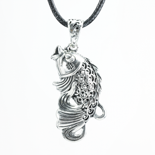 Vintage Fisch Totem Anhänger, Orientalischer geschnitzter Fisch Halskette Charm, Glücksbringer Amulett Anhänger für Männer