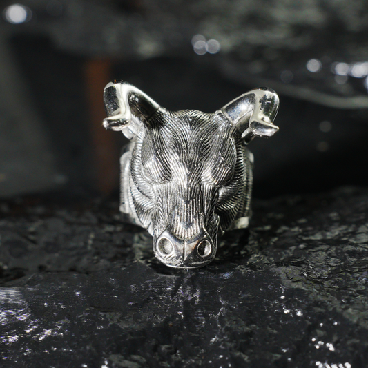 Vintage-Stierkopfring | Realistisches Totem-Skulptur-Design | Offenes Auge als Symbol innerer Stärke | Tiergeist-Schmuck für den Alltag