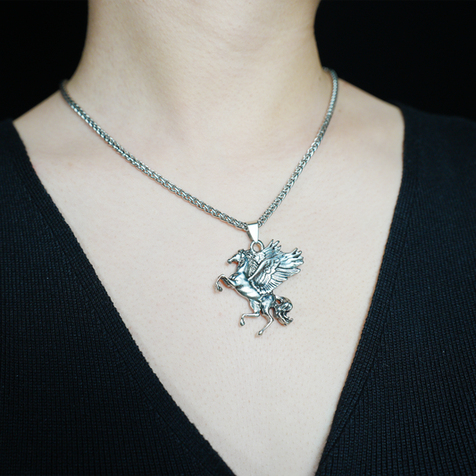 Vintage Pegasus Halskette, Mythischer Pferdeanhänger aus Messinglegierung, Gothic Fantasy Schmuck